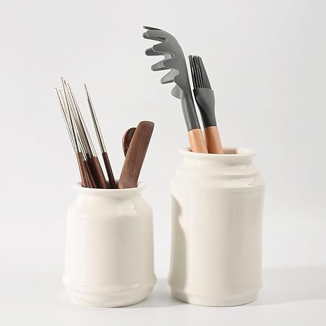 Porte-ustensiles Cuisine Porte-ustensiles for comptoir de cuisine, pot à ustensiles en céramique, organisateur d'ustensiles de comptoir, pot de rangement de vaisselle blanc Vintage, porte-cuillère et