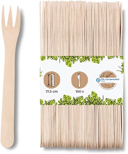 GREENBOX Lot de 100 fourchettes à frites XL - Compostables en bois dur naturel - Fourchettes en bois dur naturel - 100 fourchettes à frites - 17,5 cm - DSE063331