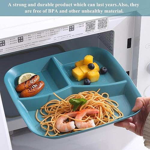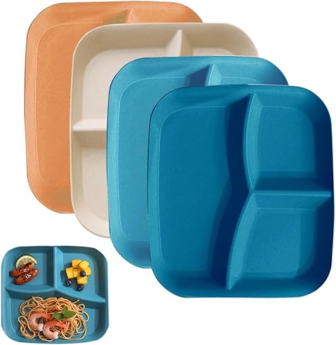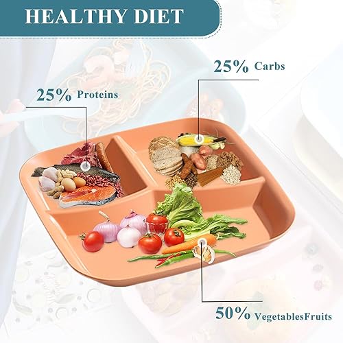 Bieiyhe Lot de 4 Assiettes Divisées Plastique,Assiette Reequilibrage Alimentaire Adulte,Assiette Regime,Assiette Proportion Diététique,Assiette équilibrée,Assiette Portion Enfant,Assiette Incassable