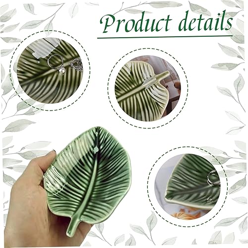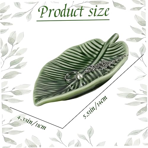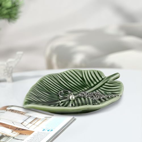 Plateau à bijoux en céramique en forme de feuille vert 10, 9 x 14 cm plateau à bijoux décoratif pour colliers bagues boucles d'oreilles