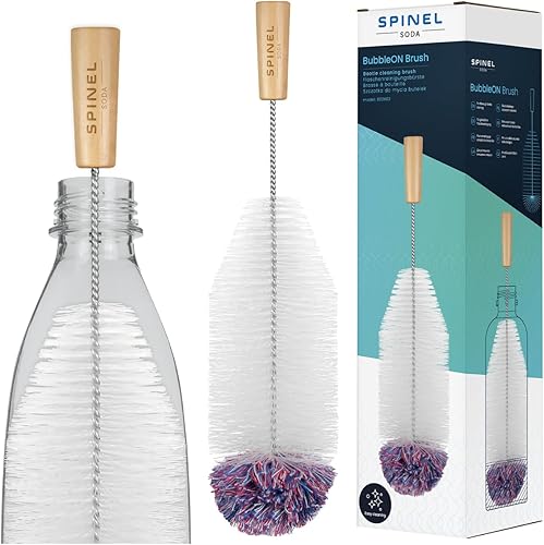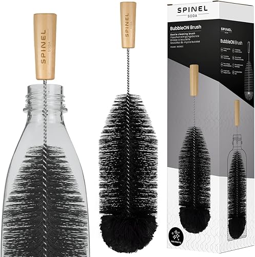 Spinel Soda - Brosse à bouteille compatible avec Sodastream pour le nettoyage des bouteilles en verre et en plastique, taille longue universelle avec poils, nettoyage sans rayures (Noir)