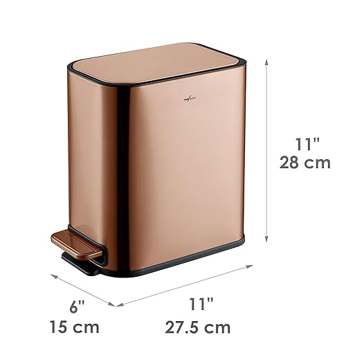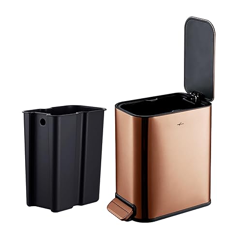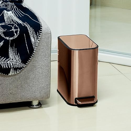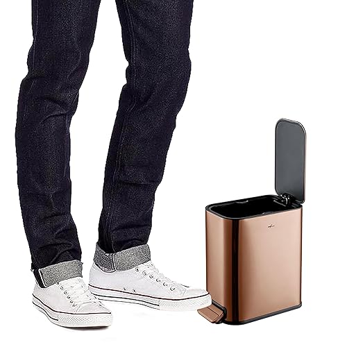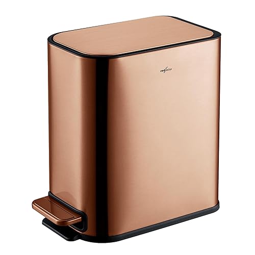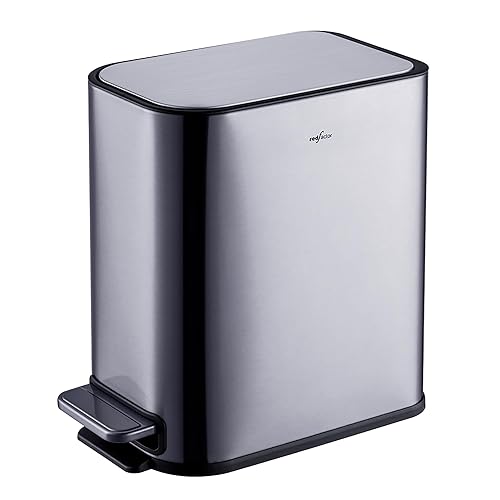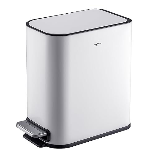 RedFactor Petite Poubelle à Pédale Fine 5L en Acier Inoxydable – Couvercle à Fermeture Douce et Seau Intérieur Amovible pour Salle de Bain, Cuisine ou Bureau (Blanc Métallique)