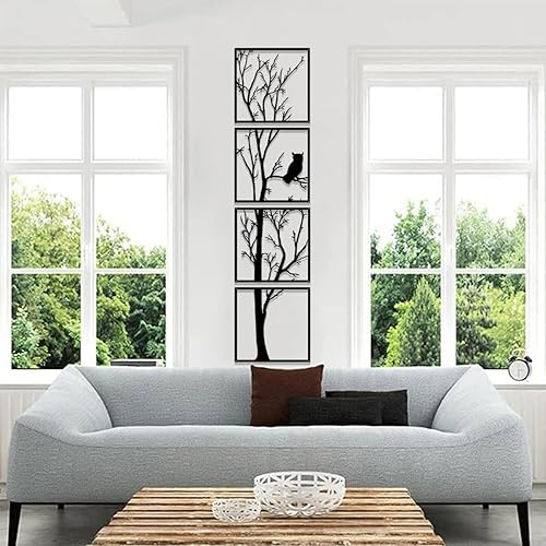 Luccyle Arbre Decoration Murale Metal,Arbre En Métal,Decoration Murale Maison,Idéale pour salon et couloir,Grand lot de 4 (11.8in×47in)