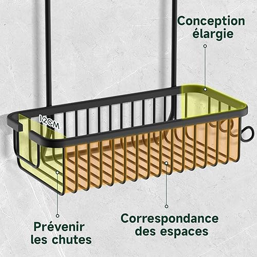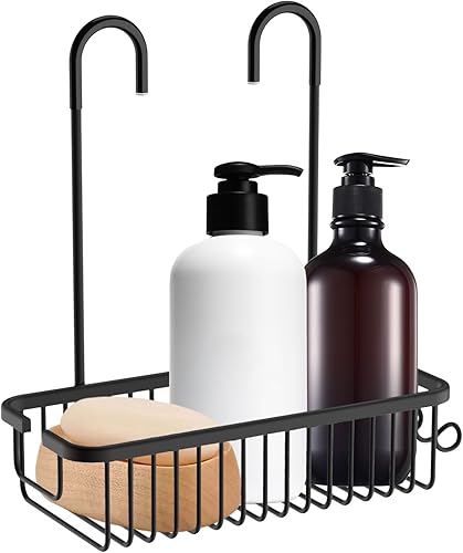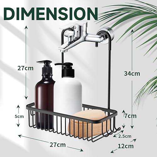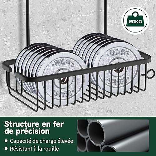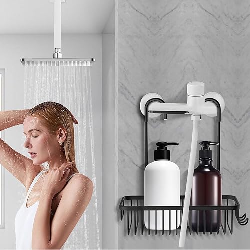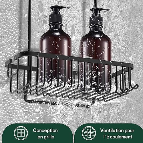 GOOPOOL Étagère de Douche Sans Percage Suspendre Porte Douche Salles de Bains Compactes Panier Douche Murales Etagere Antirouille Rangement Salle de Bain Douche Suspendu au Robinet Noir