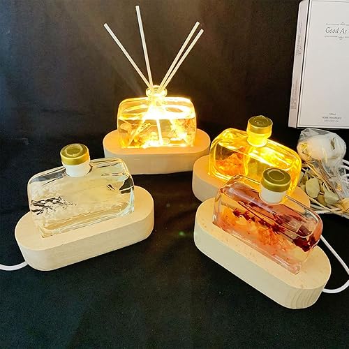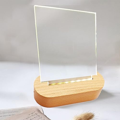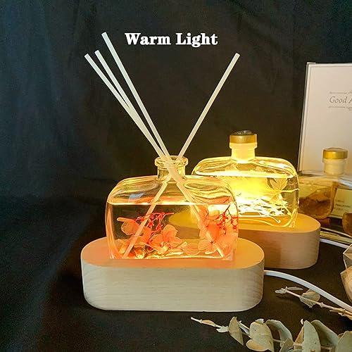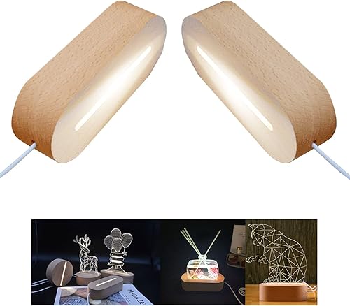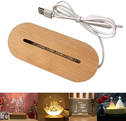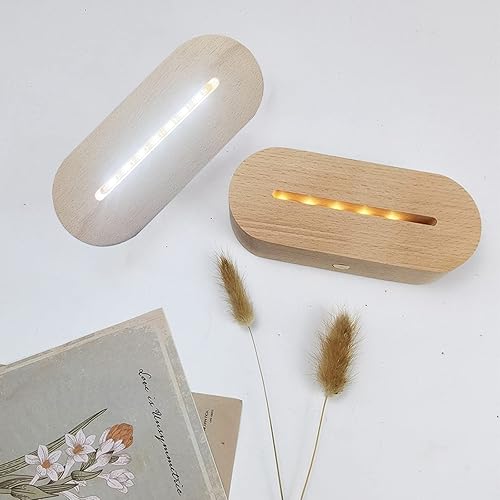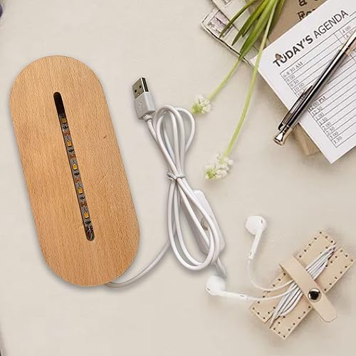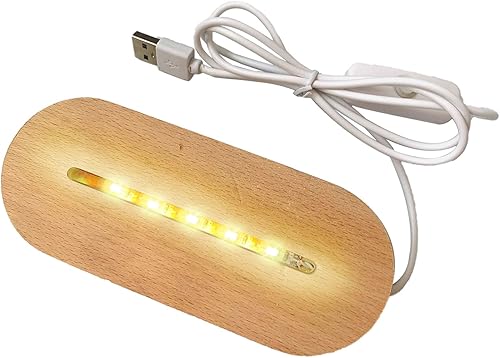 SWTHM Base d'affichage ovale en bois à DEL de 14,5 cm, lumière chaude/froide, rechargeable par USB pour plaque en acrylique, plaque en verre cristal, ornements en cristal (1 couleur chaude)