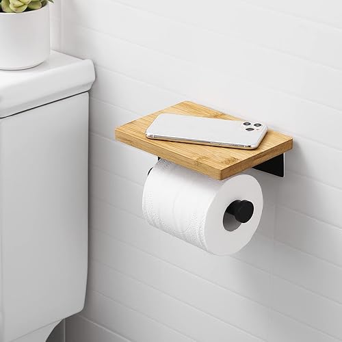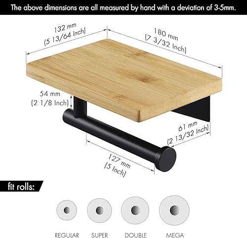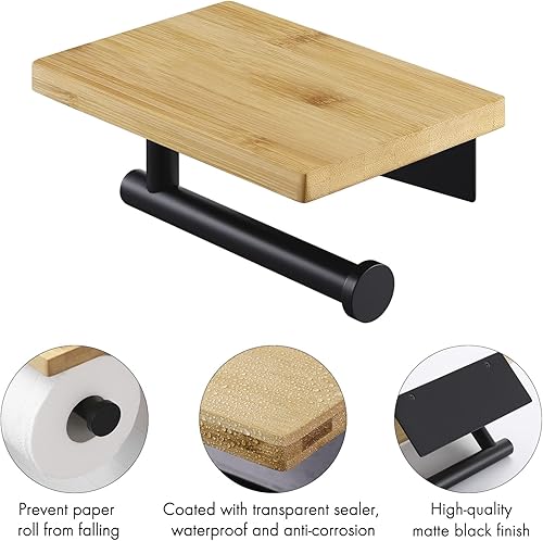 KES Porte-Papier Toilette avec étagère en Bambou Support Mural pour Papier Toilette pour Salle de Bain Acier Inoxydable SUS304 Brosse, BPH220BADM-2
