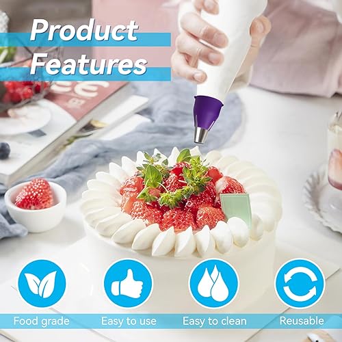 AYSYR Lot de 3 poches à douille réutilisables avec douilles, 30/35/40 cm, accessoires de pâtisserie avec 48 douilles pour décoration de pâtisseries, tartes, pâtisseries maison