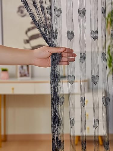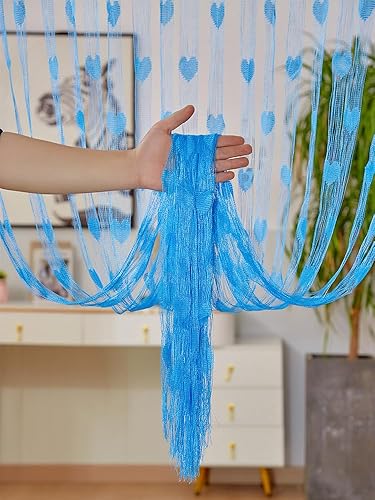 Highdi Rideau de Porte en Perles,Rideau Fil Anti Moustique Motif Amour, Separation de Piece Moustiquaire de Porte Entrée et Exterieur pour Fenêtre de Cuisine, Chambre et Salon (Bleu Ciel,1x2m)
