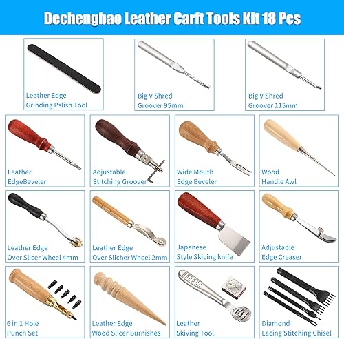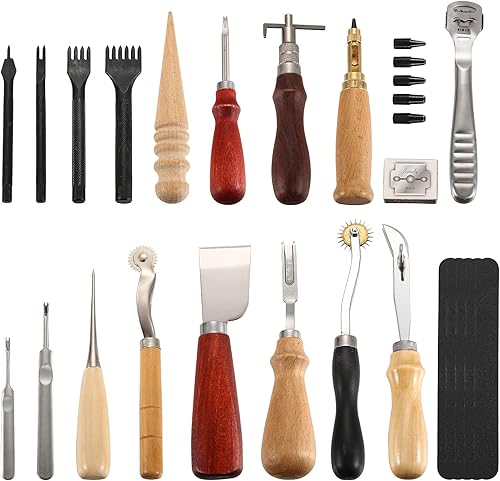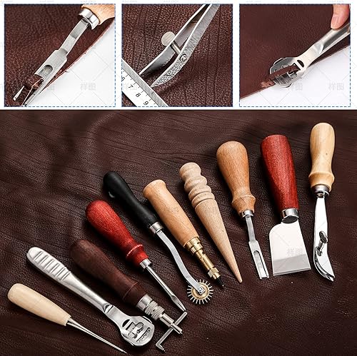 Outils de bricolage en cuir 18 pièces, Outil de bricolage en cuir pour coudre à la main, couture et ensemble de selles