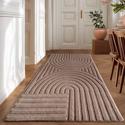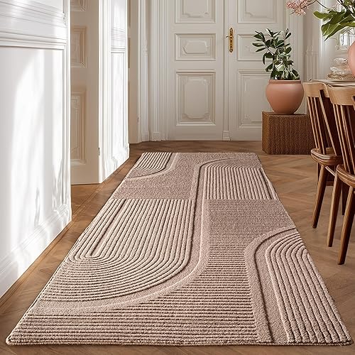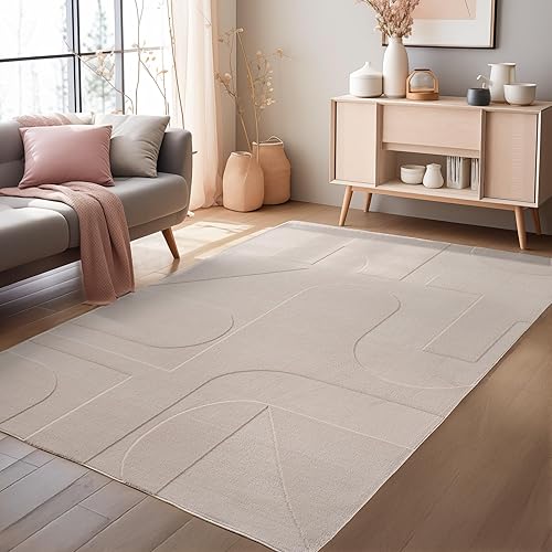 HomebyHome Tapis Boho scandinave uni Crème 80x150 cm, Tapis décoratif Doux et Lavable avec Effet 3D, Tapis de Passage Facile d'entretien Salon et Chambre à Coucher