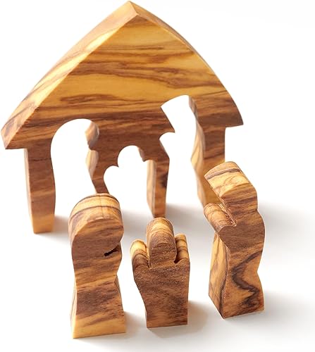 KASSIS décoration de Noël en Bois d'olivier nativité Puzzle Table nativité Table décoration de Bethléem 6,50 cm x 6 cm