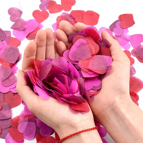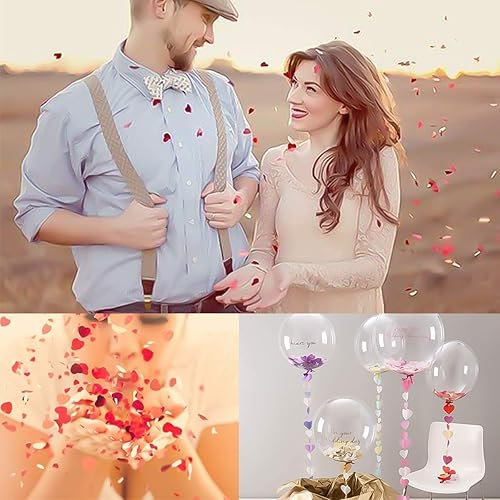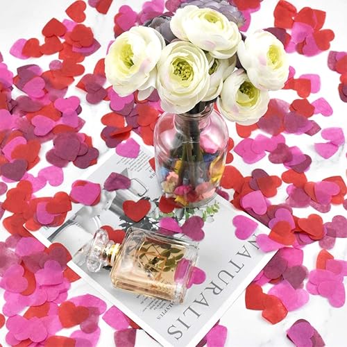 Volumoon 6000Pcs Confettis en forme de cœur, Ronde Confettis de Table en Papier, Confettis Roses Rouge pour les Décorations de Mariage, Décoration de Table, Baby Shower, Fête d'anniversaire