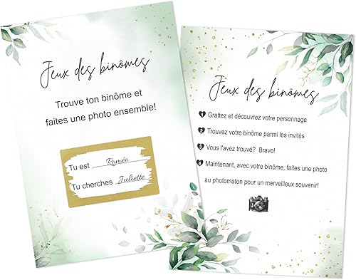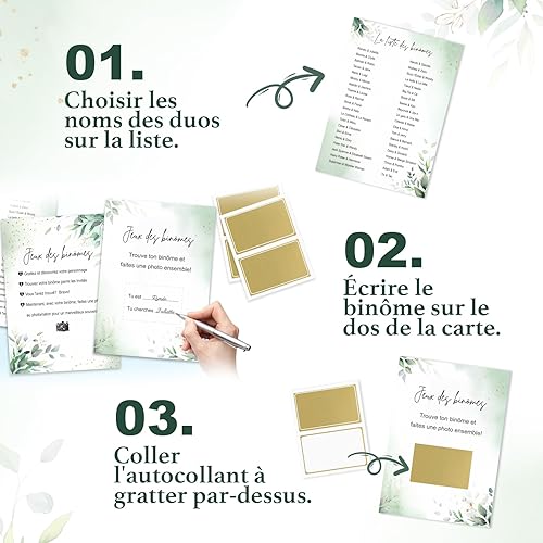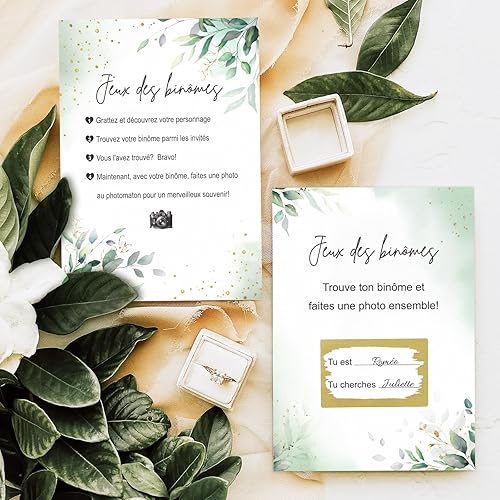 BETESSIN Lot de 50 Jeux des Binômes Mariage Défis Photo Idée Animation Invités Amusante en français