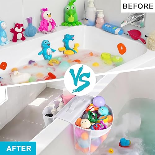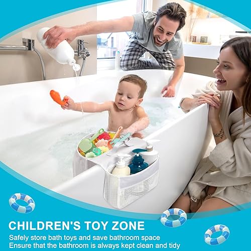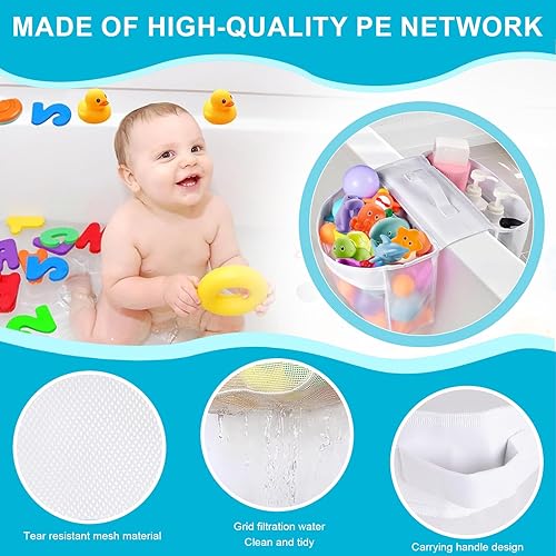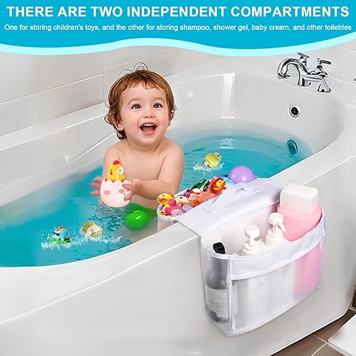 Zyiphor Sac de Rangement Jouets de Bain Bébé, Organisateur Suspendu en Filet de Maille Résistant, 2 Compartiments pour Salle de Bain, Idéal pour Baignoire et Douche, Accroche Murale ou d'Angle