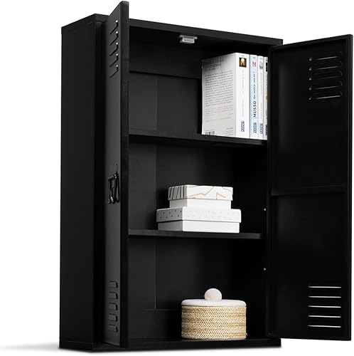 IDMarket - Armoire murale ESTER 2 portes métal noir design industriel