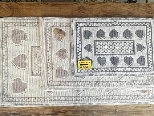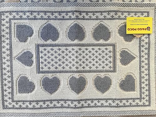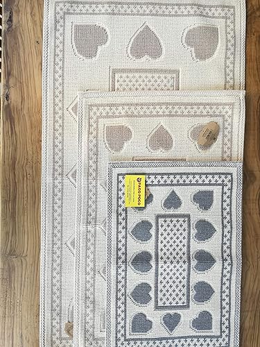 PAGO POCO Tapis ou tapis de lit style sardo et cœurs en toutes tailles. Couleurs : gris+beige. 100 % coton antidérapant (beige, 40 x 70)