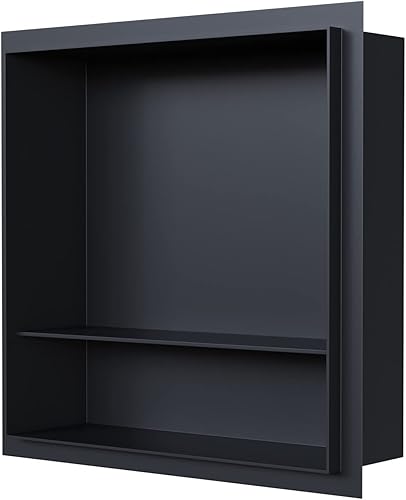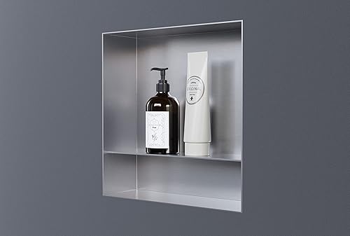 BERNSTEIN - Niche murale douche Blanche sans rebord 30x30x10cm acier inoxydable étagère encastrée salle de bain + 1 tablette, Anti-rouille, étanche, installation facile - NT303010X