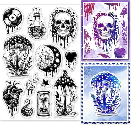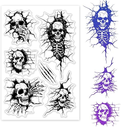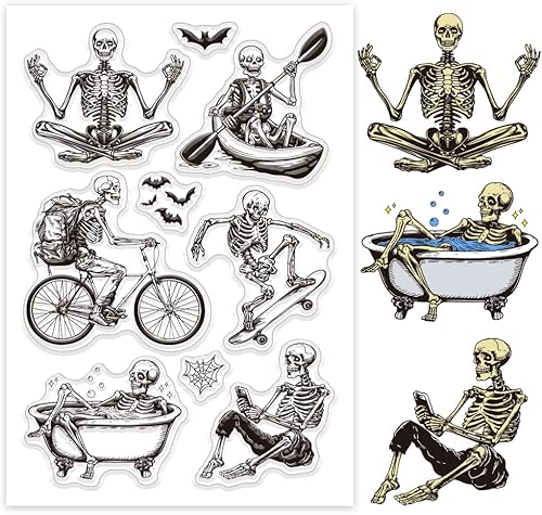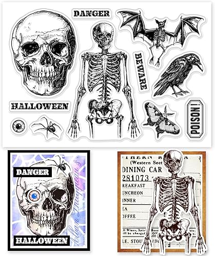 GLOBLELAND Tampons Transparents Cadre de Bordure D'Halloween Cadre de Chauve Souris Squelette Tampon Transparents en Silicone Sceaux de Branche Tampons pour Bricolage Cartes de Scrapbooking