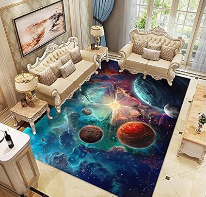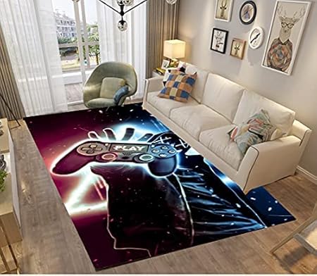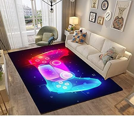 Tapis Chambre Gamer Galaxie Lune Ado Garcon Enfant Adulte,Tapis De Salon Bain Home Antiderapant 3D Gamepad Décoration Tapis Poil Ras Flanelle Tout Doux Moderne Noir Bleu (colore,120x160 cm)