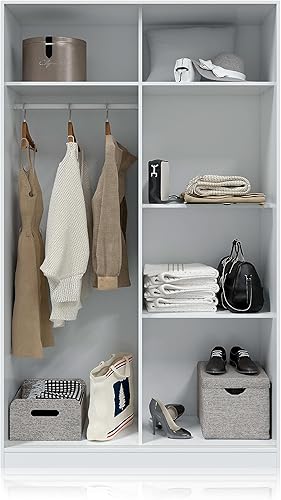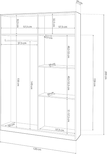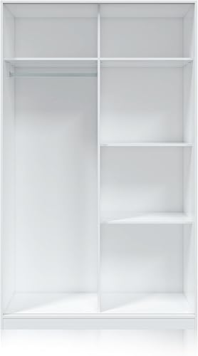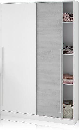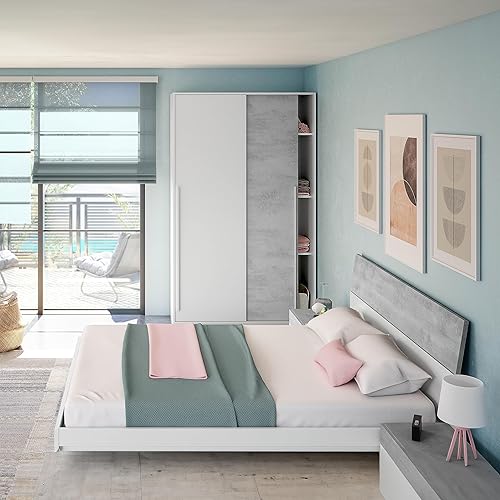 Armoire à 2 Portes coulissantes, Barre de Suspension et étagères, Armoire pour Chambre à Coucher, modèle Top 120, Finition Blanche Artik et Ciment, Dimensions : 120 cm (L) x 200 cm (H) x 50 cm (P)