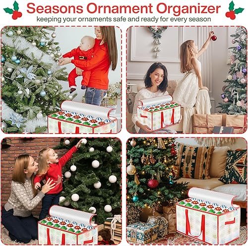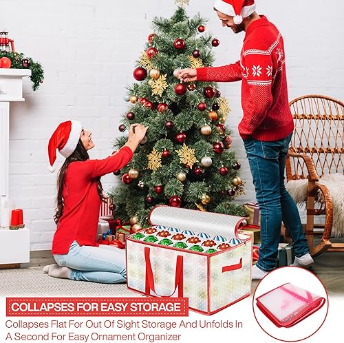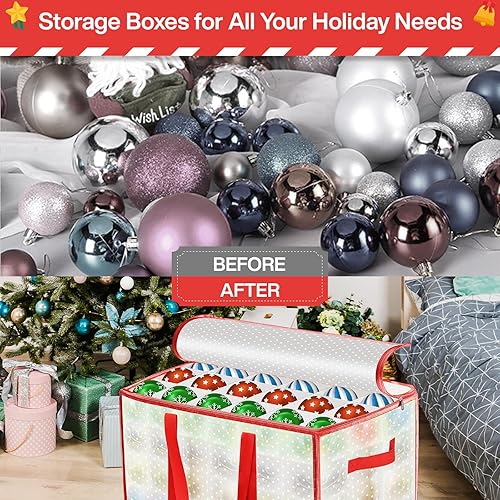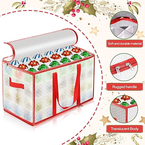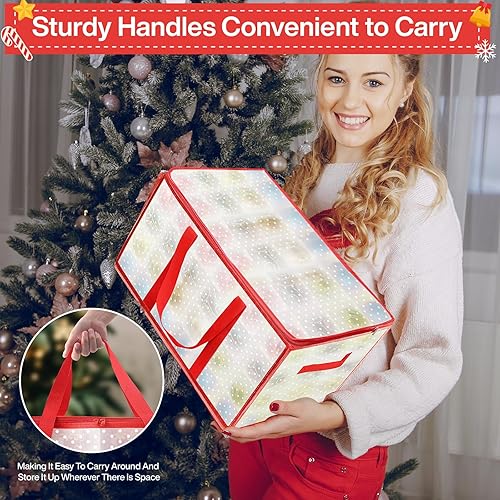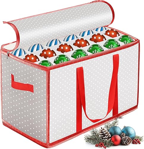 Vautvis Rangement Boules de Noel, Rangement Decoration Noel pour 72 Boules, Boite Rangement Boule de Noel, avec Séparateurs Réglables, Boîte de Rangement Pliable, Poignées - Rouge