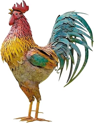 Sculpture de coq en métal Ornement de coq debout Décoration extérieure Statue d'extérieur de poulet, décorations de jardin en plein air, décoration d'animal debout pour jardin, pelouse