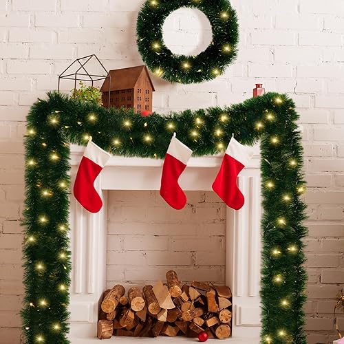 Enrimyee Guirlande Noel Sapin Artificiel 5m,Décorations de Noë, pour Escaliers Cheminées Portes, Decoration Noel Exterieur ou Interieur