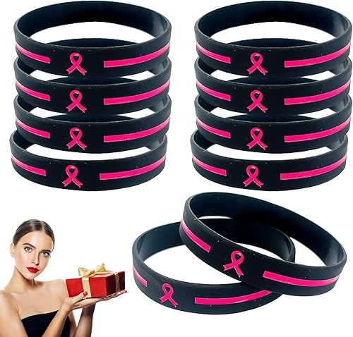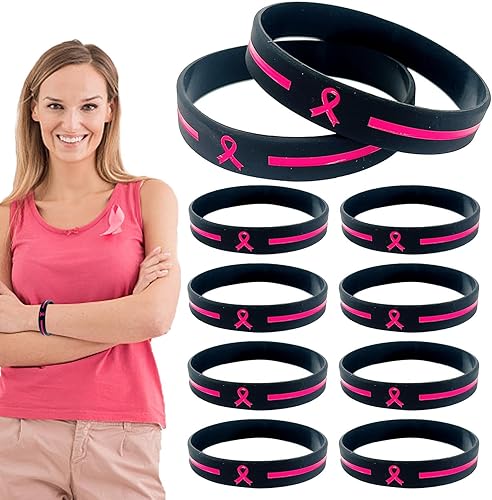 Shenrongtong Sensibilisation au Cancer du Sein Ruban Sensibilisation au Cancer du Sein Bracelets en Silicone Cadeaux Sensibilisation au Cancer du Sein Articles fête Faveurs