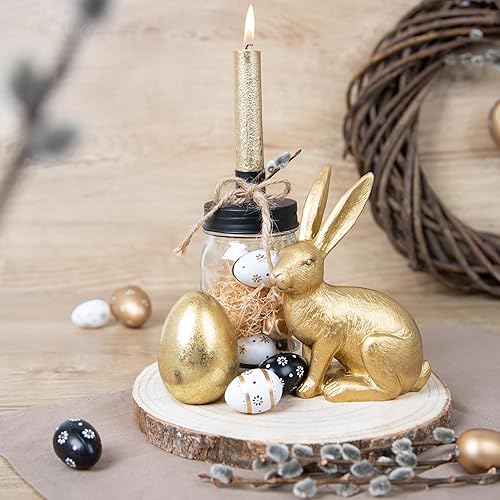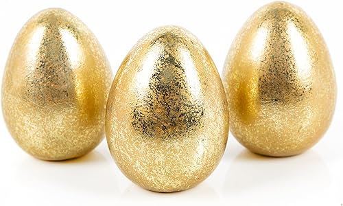 Logbuch-Verlag Lot de 3 petits œufs de Pâques dorés en céramique dorée brillante Décoration de table de Pâques 8 cm
