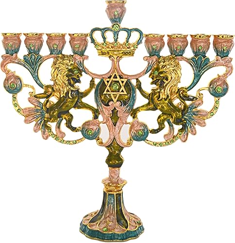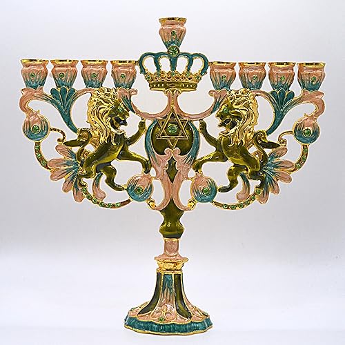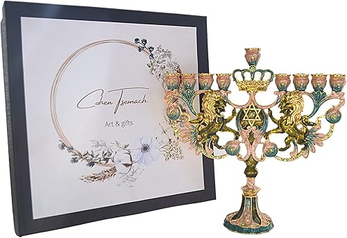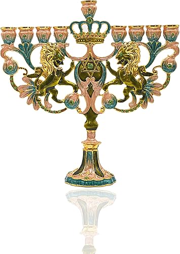 Cohen Tsemach Art & Gift Hanoukka Menorah Étoile de David Hanukkiah en émail Turquoise