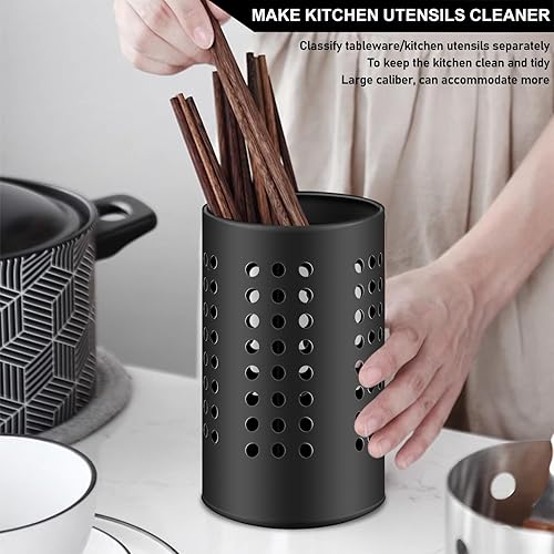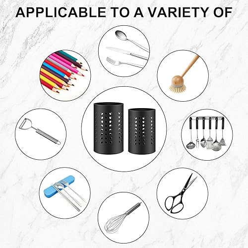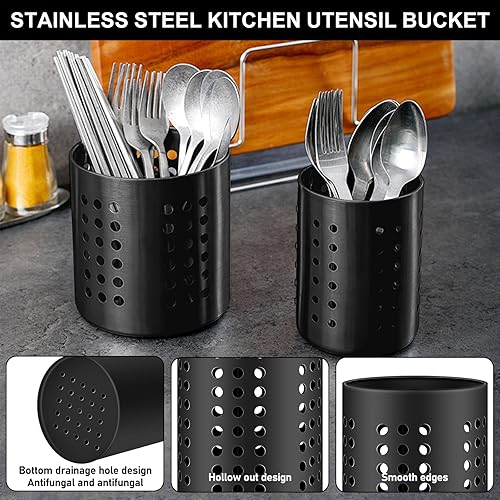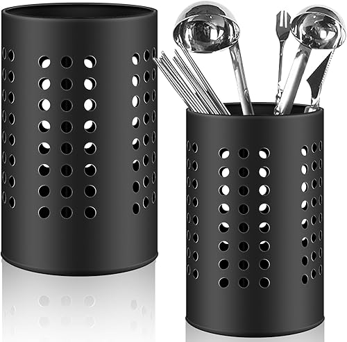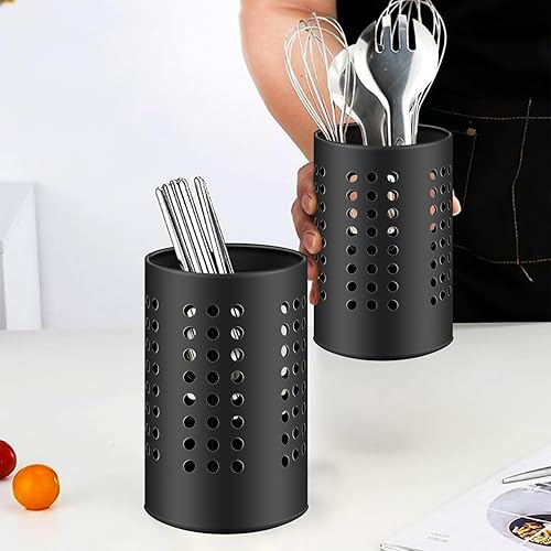 Molbory Lot de 2 porte-ustensiles de cuisine noirs - 18 x 12 cm et 16 x 10 cm - Égouttoir à couverts - Organisateur d'ustensiles de cuisine en acier inoxydable - Porte-cuillère de cuisine rond