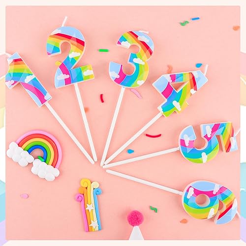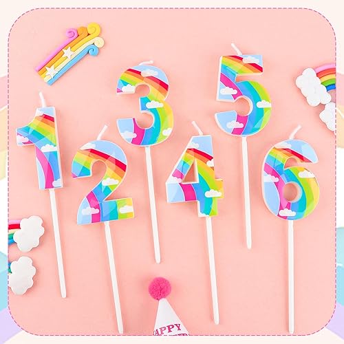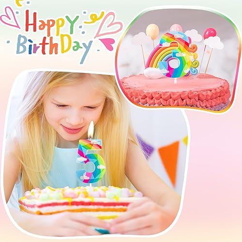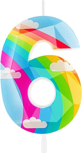 Bougie d'anniversaire en forme de nuage arc-en-ciel 3D en forme de chiffre 6 - Décoration de gâteau d'anniversaire pour filles, garçons, femmes, anniversaires de mariage