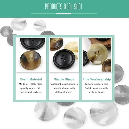 ZoTuoART Lot de 8 boutons ronds à 4 trous en résine mate double face 15-38 mm – Boutons pour manteau en laine et pantalon coupe-vent – Beige 38 mm