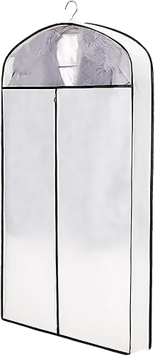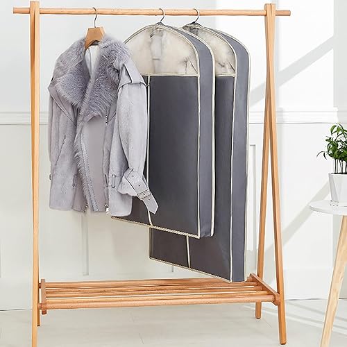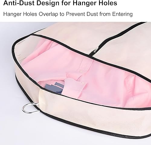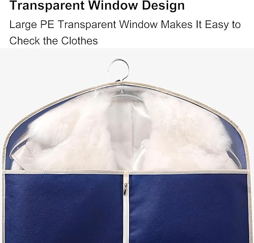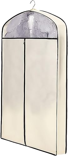 QiaoRong Housse Vetements à Suspendre, Grande Housse Costume avec Fermeture Éclair et Fenêtre Transparente pour Fourrure, Vison, Doudoune, Manteau en Coton(Beige,60x10x110cm/24x4x43in)
