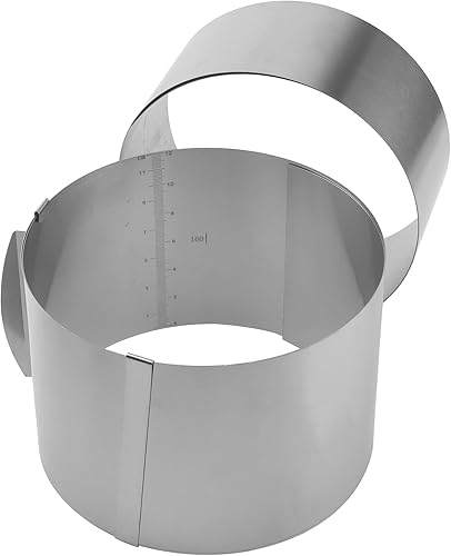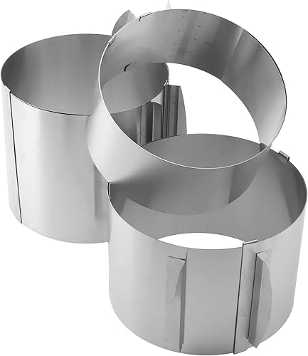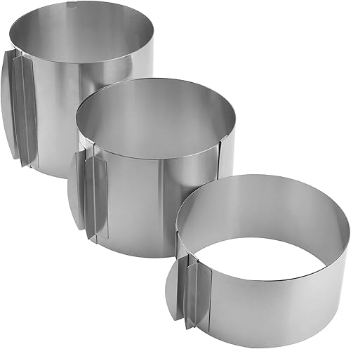 MUNGHOK Lot de 3 Cercles à gâteau en Acier Inoxydable réglables en Hauteur - 16 à 30 cm - avec échelle - 8,5 cm, 12 cm, 15 cm de Haut - Cercle à Patisserie reglable - Anneau de Cuisson Rond