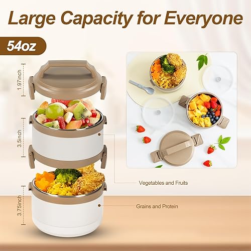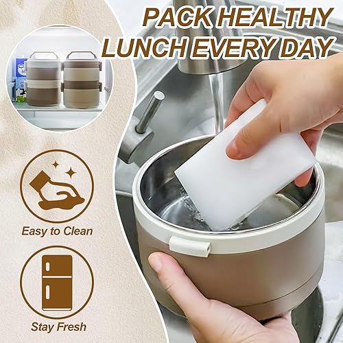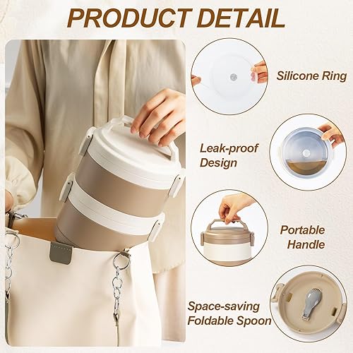 Lille Home Tiffin Boîte à déjeuner/collation isotherme empilable en acier inoxydable à 2 niveaux avec sac à déjeuner et ustensiles, 1500 ml (025)