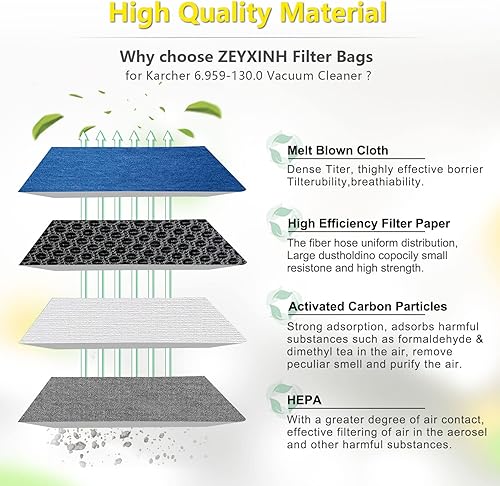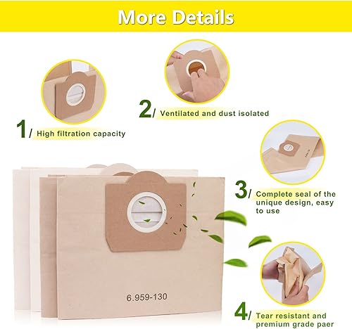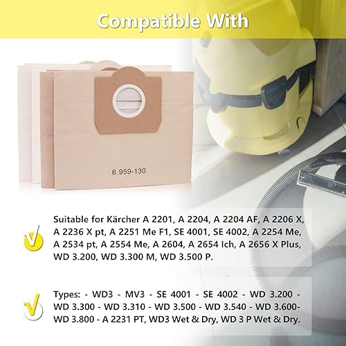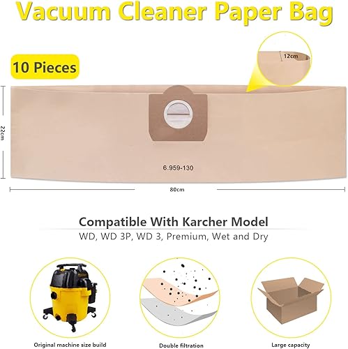 ZEYXINH Lot de 10 Sacs Aspirateur pour Karcher 6.959-130.0, Sacs en papier filtre pour Karcher WD3 MV3 WD3P A2201/2204/2504/2554/2251/2604 Aspirateur