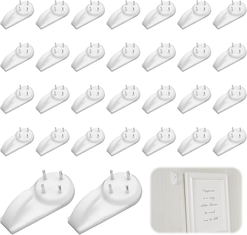 30 Pièces Crochets Muraux pour Tableaux Cadres Photos Miroirs, Kit de Suspension avec Clous, Crochets en Plastique et Acier pour Mur Béton Bois Plâtre Décoration Maison Facile à Installer