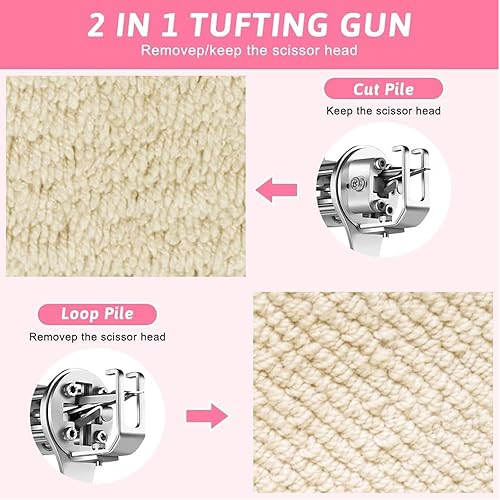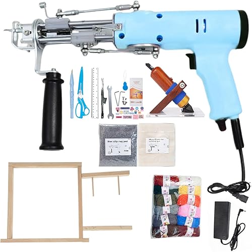 Kit de démarrage pour pistolet à touffeter – Pistolet à touffetage 2 en 1 à boucle pour tapis, haute vitesse 5–40 points/sec – Kit de fabrication de tapis idéal pour les débutants avec support à