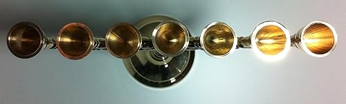 Chandelier à 7 branches en laiton bruni, antique, menorah Or vieilli.