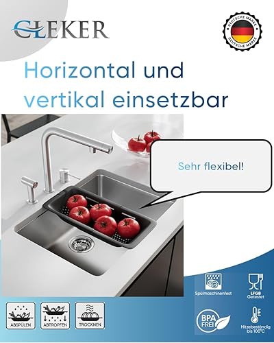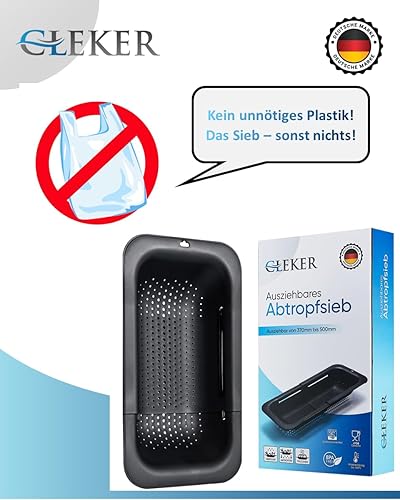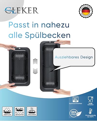 CLEKER Passoire de Cuisine XXL Extensible (37 à 50 cm) - Panier sur l'Évier pour Fruits, Légumes, Pâtes - Idéal pour Cuisine, Lavabo, Camping