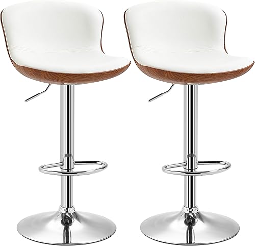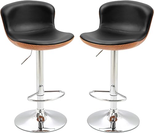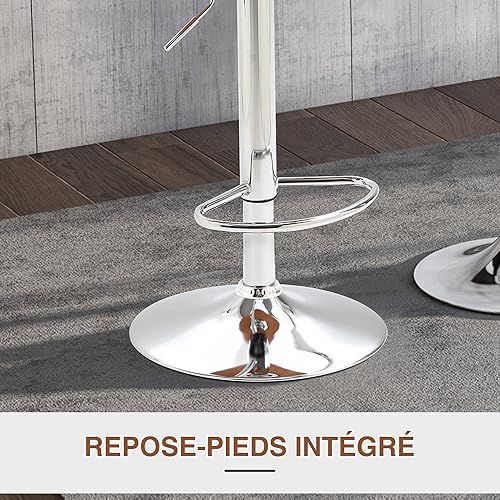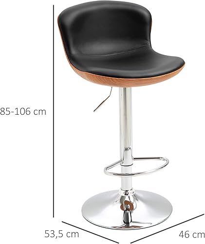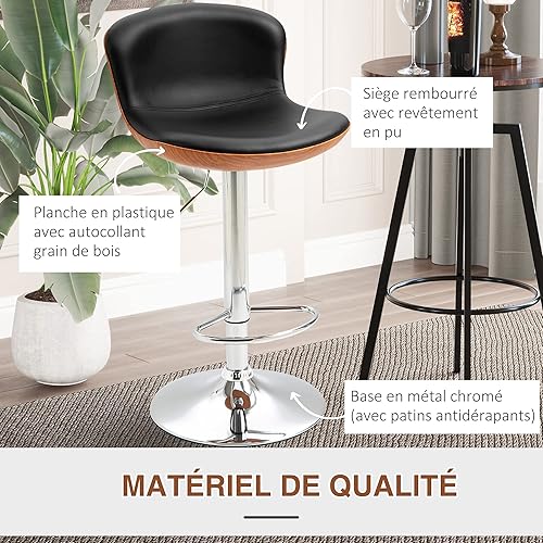 HOMCOM Lot de 2 Tabouret de Bar Design Contemporain Hauteur d'assise réglable 64-85 cm pivotant 360° revêtement synthétique Noir Imitation Bois