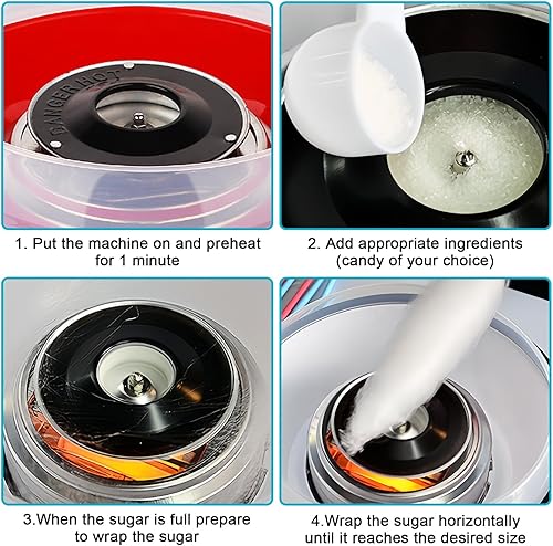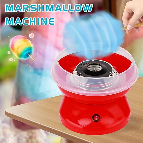 Machine à Barbe à Papa, 450w Cotton Candy Machine pour La Maison Barbe a Papa Appareil avec Cuillère Et 10 Bâtonnets Facile à Utiliser et Nettoyer Idéal pour Anniversaire Enfant, Rouge