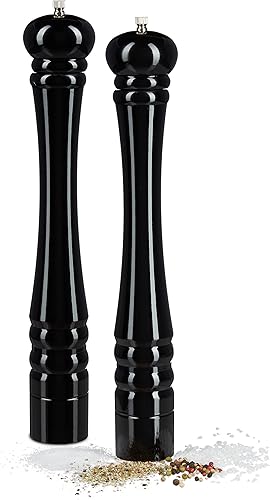 Relaxdays 10020593 Moulin à poivre HxlxP: 40 x 6 x 6 cm moulin à sel 40 cm céramique moulin à épices design classique, noir