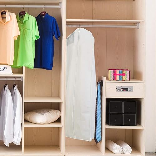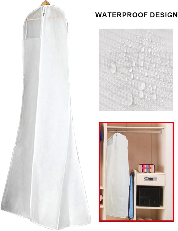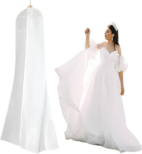 Housse de protection pour robe de mariée, 180 cm, respirante, étanche à la poussière, pour robes de mariée, robes de soirée ou manteaux longs (blanc)