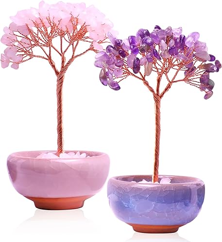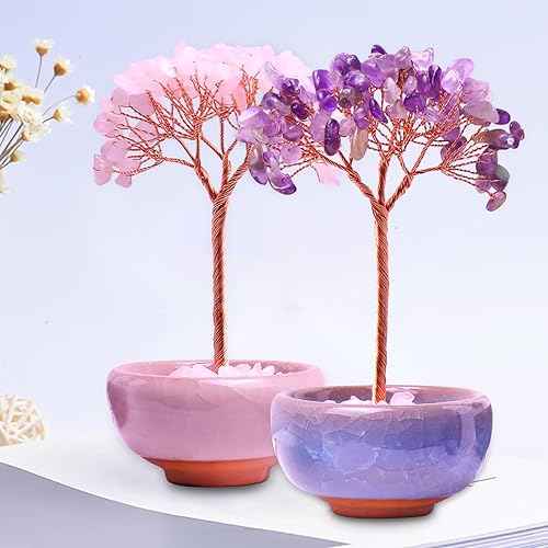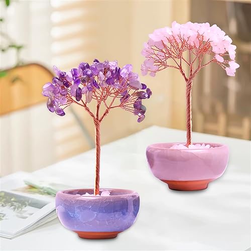 Lot de 2 pierres chakra Feng Shui - Pierres de guérison Feng Shui - Arbre en cristal - Arbre Feng Shui - Pierres précieuses de guérison - Arbre de vie