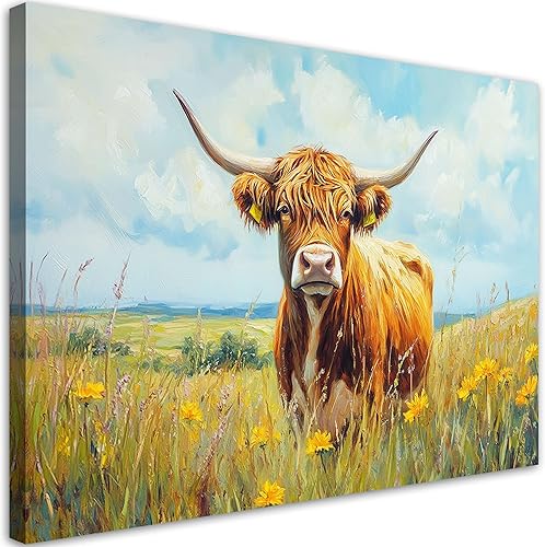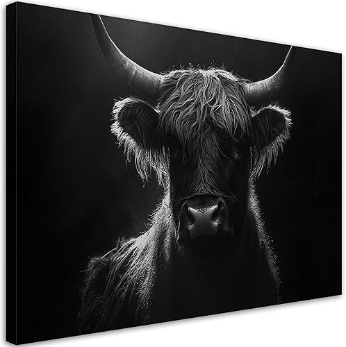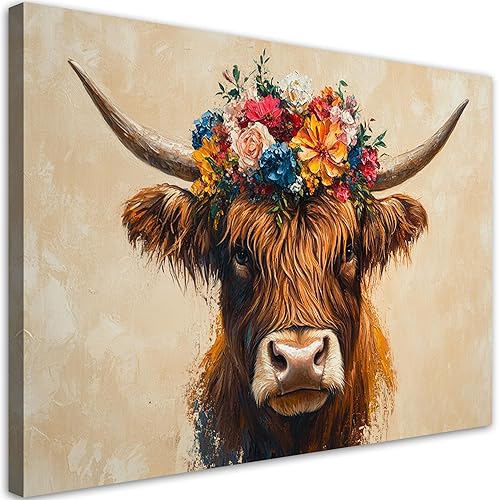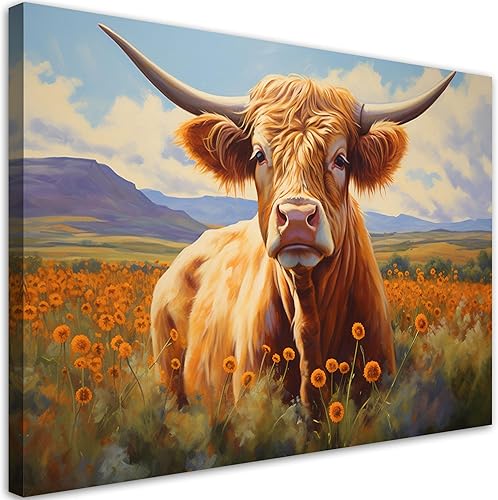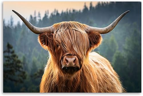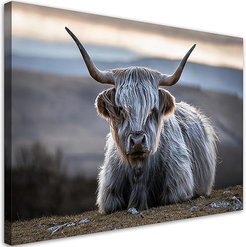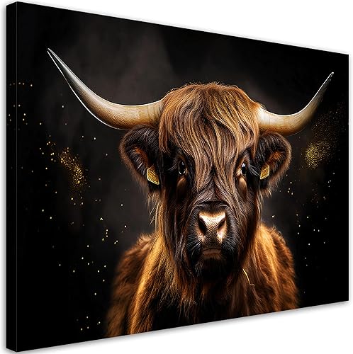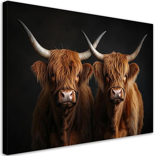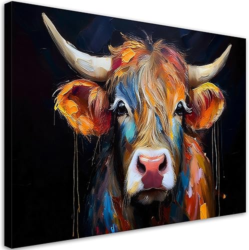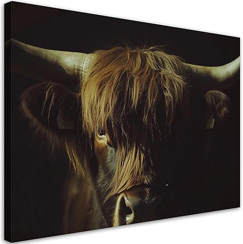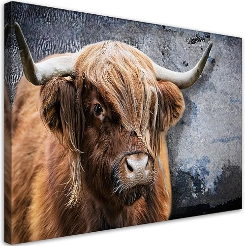 Feeby - Tableaux Decoratifs - Tableau Salon Grand Format - Vache écossaise abstraite - 120x80 1partie - Décoration Chambre - Toile Imprimée Intissé Decoration Murale