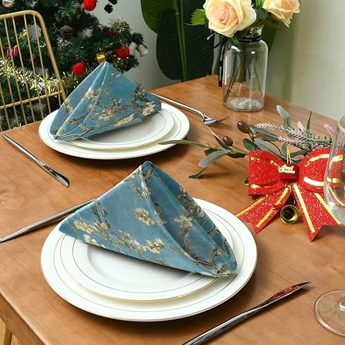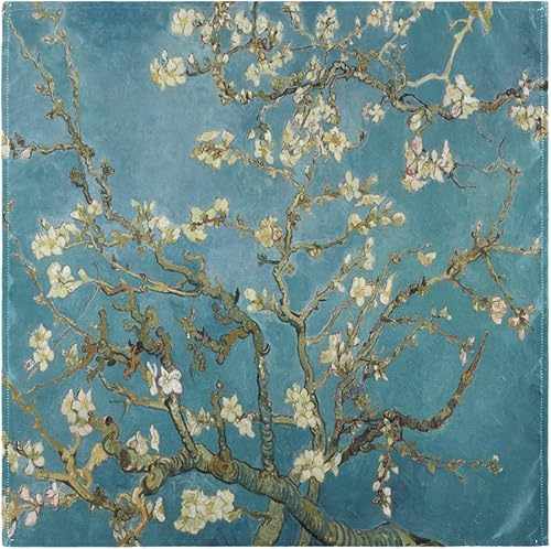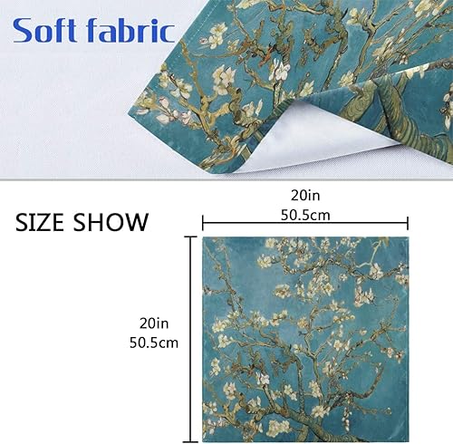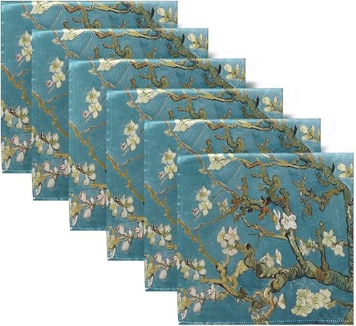 Kcldeci Van Gogh Lot de 6 serviettes de table en lin Motif fleurs d'amandier Bleu
