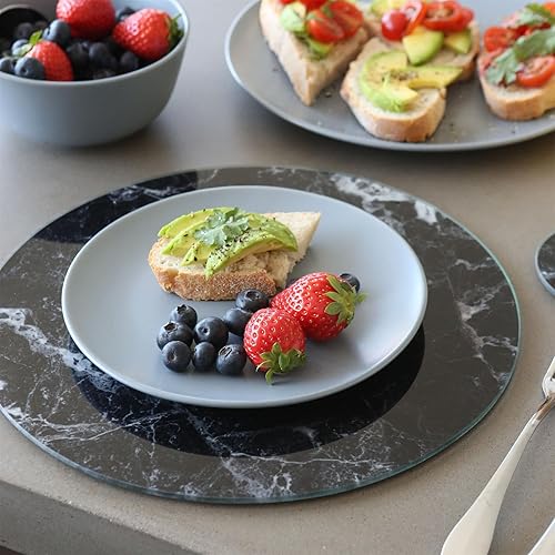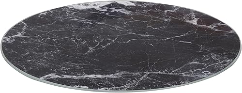 Harbour Housewares Planche à Découper Ronde en Verre - 30cm - Marbre Noir - 1x Tempéré Résistant à la Chaleur Maison Cuisine Économiseur de Plan de Travail Plaque Cuisinière Protecteur de Surface