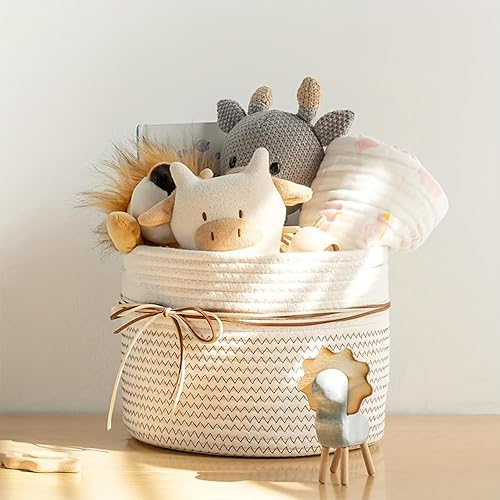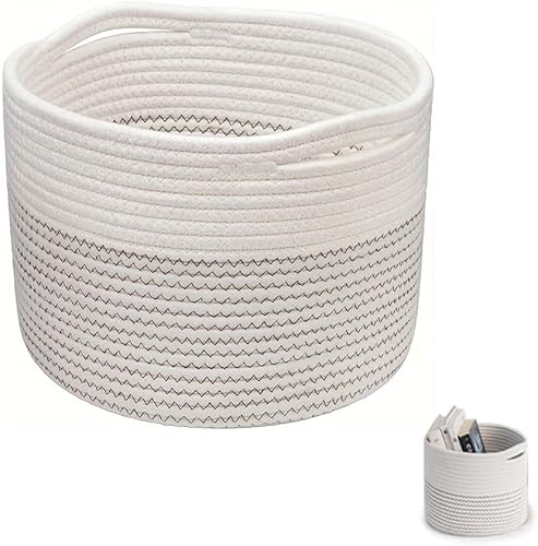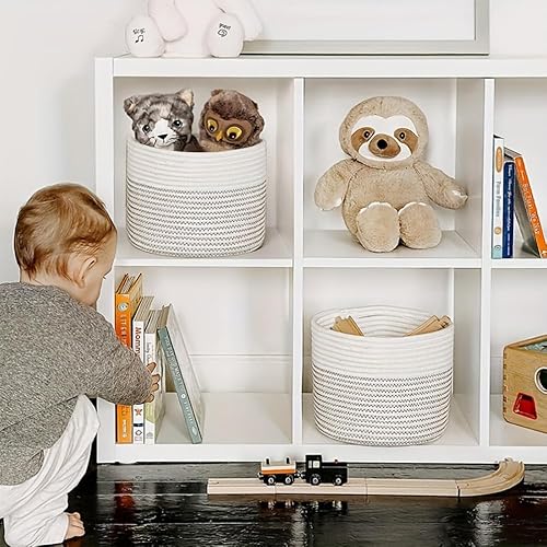 KBIBCK Paniers de rangement tissés, paniers de rangement en corde de coton, 24 x 24 x 18 cm, paniers à livres avec poignées, petits paniers de rangement pour jouets, panier de rangement pour bébé